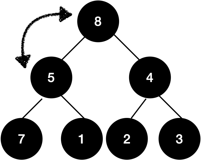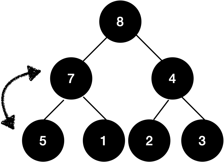 왼쪽 자식 노드와 오른쪽 자식 노드와 비교해서 더 큰값과 위치를 바꿉니다.