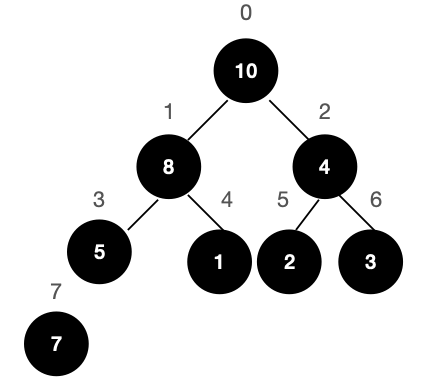 예를들어 1번 노드(값 8) 를 부모 노드라고 했을 때 자식 노드의 인덱스는 3, 4입니다.
