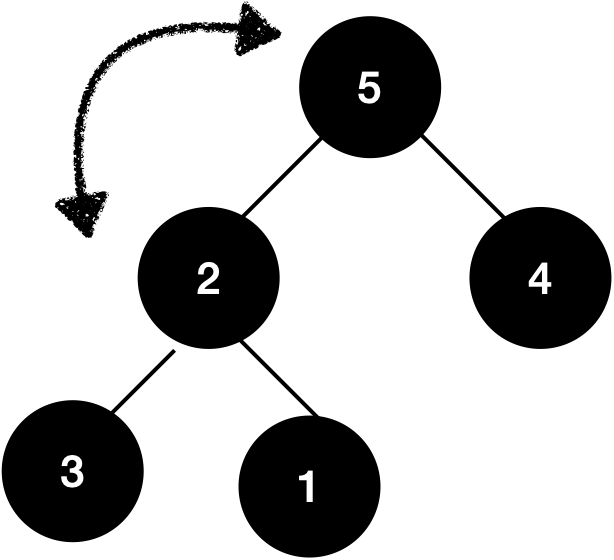 2를 5,4와 비교하여 가장 큰 값인 5와 바꿔주고, 그 다음 2의 자식인 3,1과 비교하여 더 큰값인 3과 바꿔 줍니다.