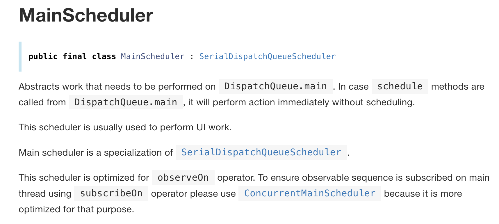 또 사실 MainScheduler라는 것은 SerialDispatcherQueueScheduler의 서브클래스라는 것도 알 수 있습니다.