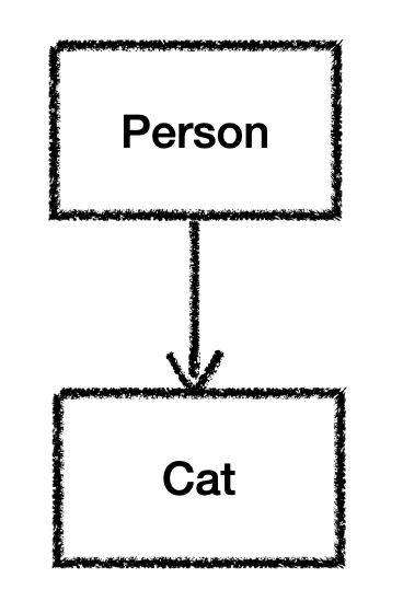 예를들어 Cat의 이름은 PetOwning에 의해서 결정되기 때문에 Cat이 PetOwning을 의존하고 있습니다. 따라서 아래처럼 표현할 수 있습니다.