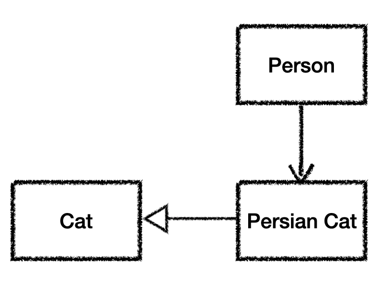 그렇다면 Person이 Cat을 상속한 Persian Cat을 가지고 있다고 한다면 아래 처럼 표현이 가능합니다!