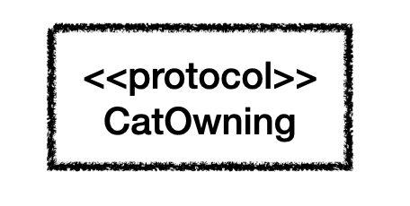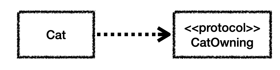 그래서 Person(A) 객체가 고양이를 가질 수 있도록 CatOwning(B)이라는 프로토콜을 채용하고 있다면 아래와 같이 그릴 수 있습니다.